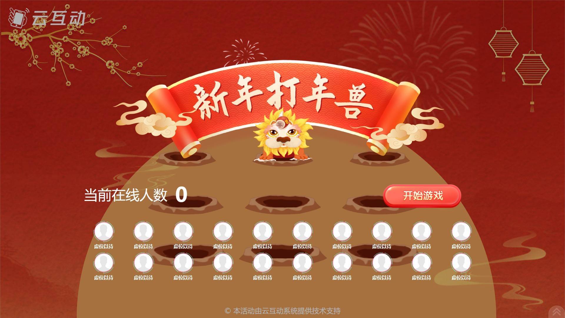 打地鼠/年兽互动游戏是一款融合中国传统春节元素的趣味敲击类互动游戏。玩家通过点击手机上的“年兽”即可获得分数,大屏幕上实时显示游戏过程并展示参与用户的成绩排行榜,游戏结束后排名靠前的可以赢取新年好礼。